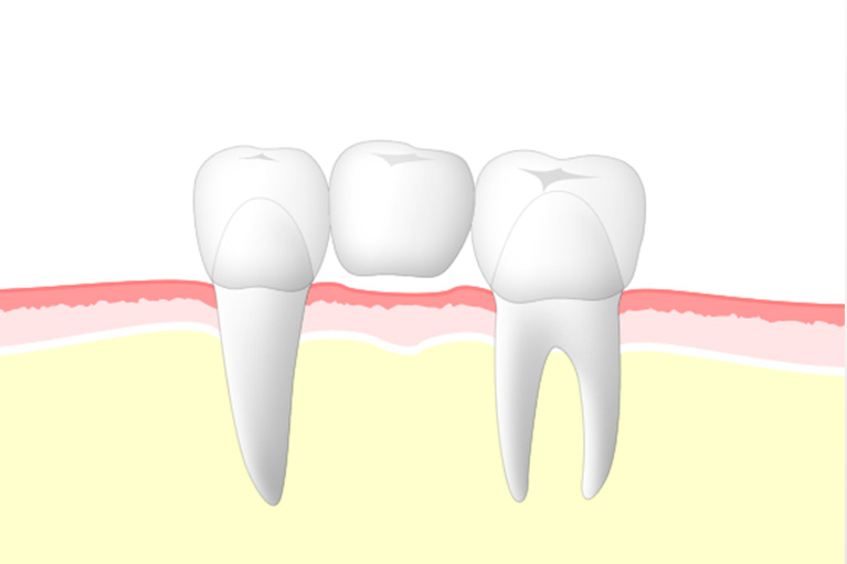 ブリッジとは、歯を失った箇所の両隣の歯を削り、それらを支えとして入れ歯を装着する方法です。歯を削らなければいけなくなりますが、入れ歯がしっかりと固定されるため、ぐらついたり外れたりすることが少なくなります。